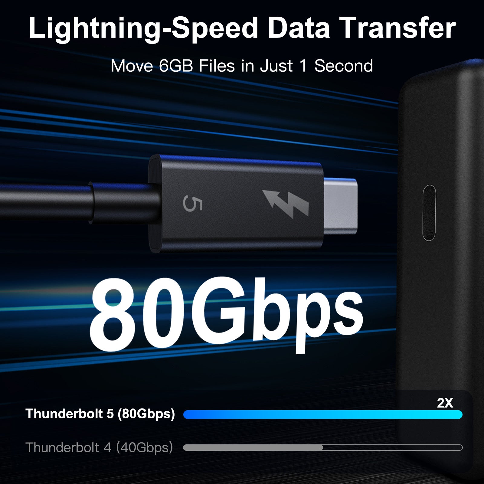 80Gbps Transfer: Move massive files instantly—transfer 6GB in just 1 second. Perfect for high-res videos, 3D models, and large files.